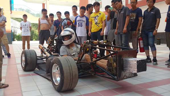 我院HUAT油车队经过将近一个月夜以继日的努力,2014赛季新车的加工装配终于接近了尾声。虽然时间紧迫,车队仍然是有条不紊的运作着,一步一个脚印,力求在细节上不出差错,争取把每一项工作都做到更好。从最开始车架的焊接、电泳,到发动机的安装,进排气管的加工,电路的连接到最后整车的总装,队员们都全身心的投入其中,大多数睡觉的时间都用来加工零件,工作室总是不分昼夜的灯火通明,但这丝毫不影响队员们工作的热情。在此期间指导老师邓老师和石老师也经常陪伴在队员们身边,不仅和队员们探讨技术上的问题,而且还对队员们的生活悉心关怀,有时候还陪伴队员们到深夜。