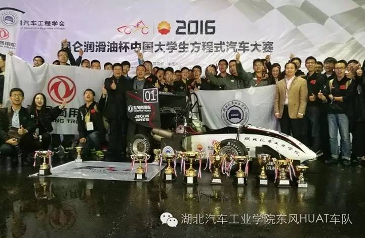 201510月:参加第6届中国大学生方程式汽车大赛,东风HUAT车队油车以总成绩880.12分获得全国总冠军,单项奖包括燃油组第一名、易车新闻传播大奖、勇哥缘梦造梦FSC大奖、成本分析第三名、直线加速第二名、高速避障第三名、耐久赛第二。