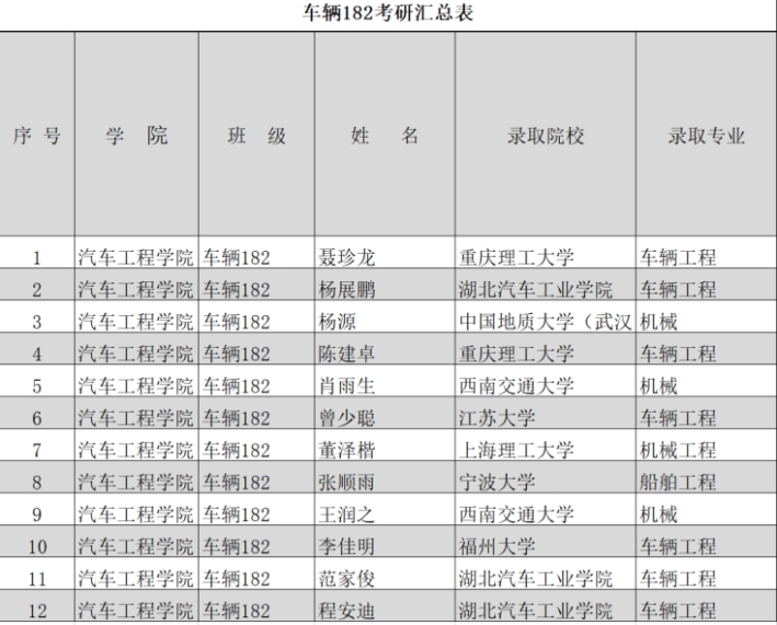 我院车辆工程182班在2022届全国硕士研究生招生考试中取得优异成绩,班级总人数40人,总录取人数为12人。一起来看看这个学霸班的青春故事吧!