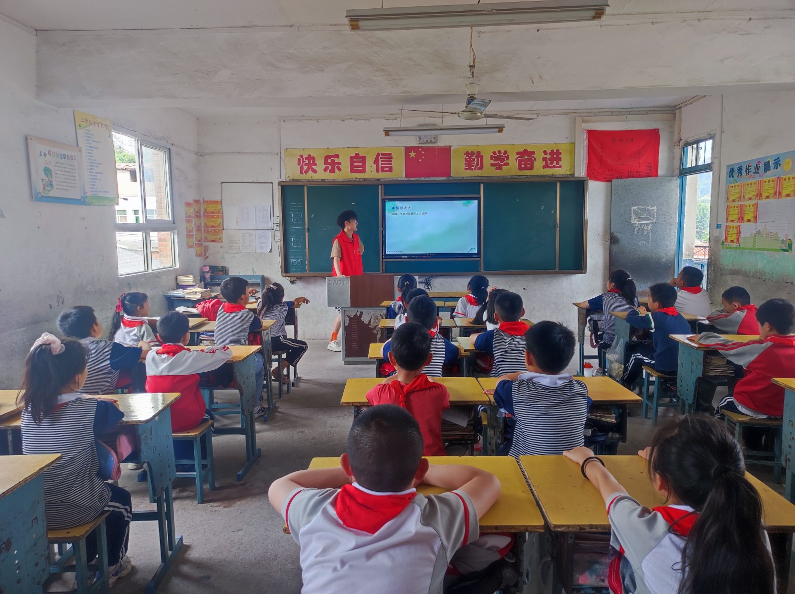 为喜迎党的二十大,庆祝中国共产主义青年团成立100周年,9001cc金沙小火柴志愿服务队于5月24日下午前往李家湾小学开展了“喜迎二十大,争做好队员”支教助学主题宣讲活动。