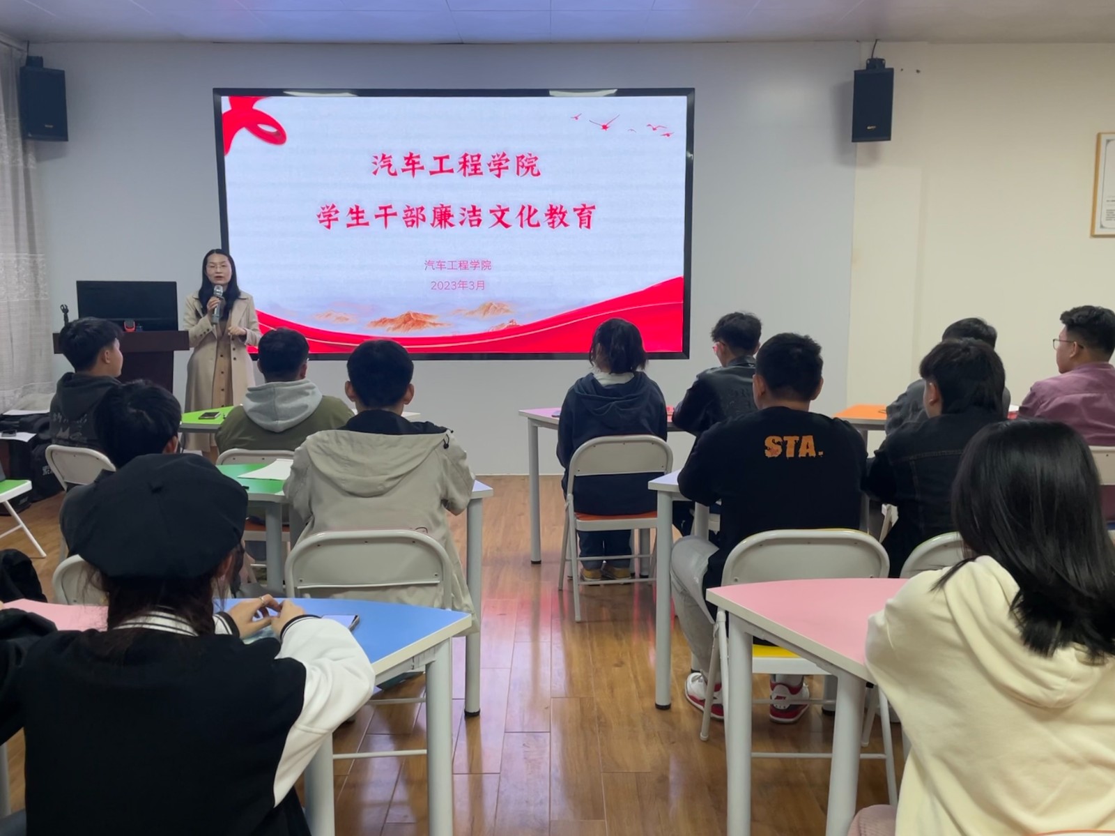 为进一步落实“清廉汽院”创建要求,提高学生干部的廉洁自律意识,9001cc金沙于3月6日下午组织开展了学生干部廉洁文化专题教育活动,分党委副书记杜昕俊主讲,学工办全体辅导员及学生会干部参加了此次学习。