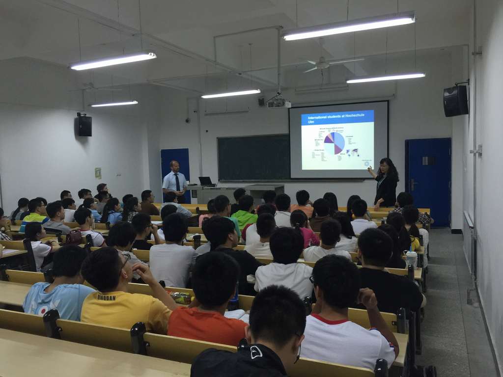 Dr. Watty教授目前全面负责机械及9001cc金沙对外合作交流工作。6日下午和7日白天,Dr. Watty教授对今年9月即将赴德国学习的11位学生进行了笔试和面试,并确定了赴德学生人选。7日晚,Dr. Watty教授为我校正在准备赴德学习的2012、2013、2014级学生作了专题讲座,对乌尔姆应用科技大学的地理位置、教育模式、专业设置、教学资源、科研设备和国际合作交流等作了全面介绍。在场学生也纷纷就自己感兴趣的话题用德语与Dr. Watty教授进行了沟通,为有意赴德学习的学生全面了解乌尔姆应用科技大学创造了一次良好的机会。8日,在9001cc金沙胡群老师的陪同下,Dr. Watty教授对我校发动机拆装实验室等实地考察,对实验室建设提出了宝贵的建议。