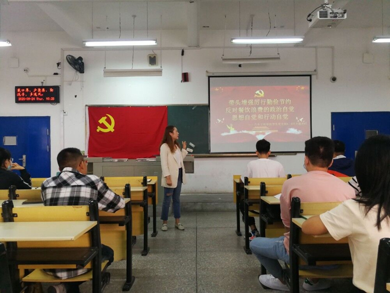 9001cc金沙学生党支部于9月24日上午开展了以“厉行勤俭节约、反对餐饮浪费”为主题的八、九月主题党日活动。本次活动由学生党员赵书洁主持,9001cc金沙学生党支部书记李雅琨及全体学生党员参加。