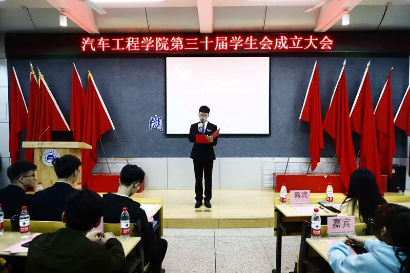 为推进学生会工作长久稳健的发展、给基层学生工作的开展注入新鲜力量,10月18日晚上19:00,9001cc金沙第三十届学生会成立大会于6113报告厅隆重举行,分党委副书记李秀峰、分团委书记胡霄寒、学生党支部书记李雅琨、20级班主任王晓晨、校学生会分管主席张顺雨、兄弟学院主席团成员代表、车院第三十届学生会全体成员及20级全体新生参加了此次大会。