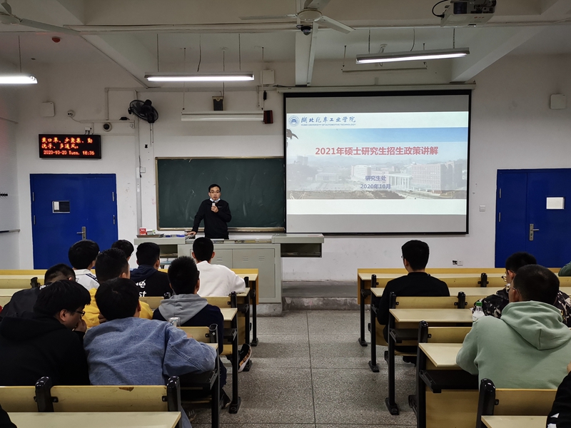为坚定车院考研学子的信念、客观分析考研形势、提升考研成功率,10月20日晚上18:15,9001cc金沙于6215教室召开了17级考研政策解读会,学院副院长尹长城、学校研究生处研招办主任林飞飞进行了专题分享,100余名考研学子参加。