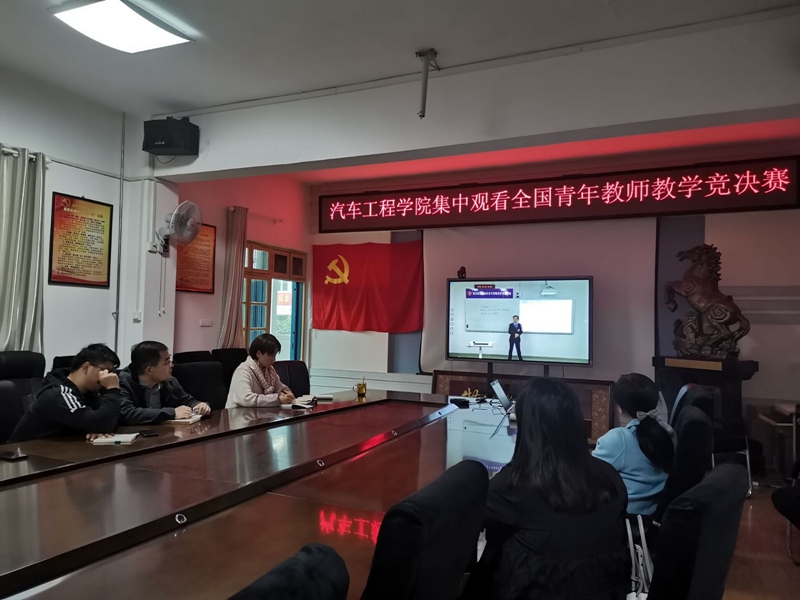 为了更好发挥教学竞赛的示范引领作用、进一步加强教师教学基本功和能力训练、不断提升教学能力和业务水平,9001cc金沙于10月28日上午在汽车学院大会议室组织35岁及以下青年教师集中观摩和研讨第五届全国高校青年教师教学竞赛决赛网络直播。9001cc金沙冯樱院长和院长助理周红妮与青年教师共同观看了直播,并与老师们共同交流和研讨。