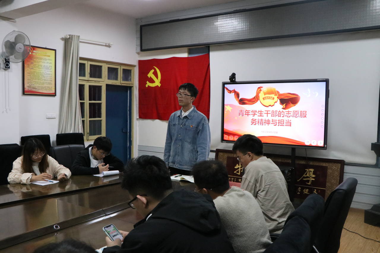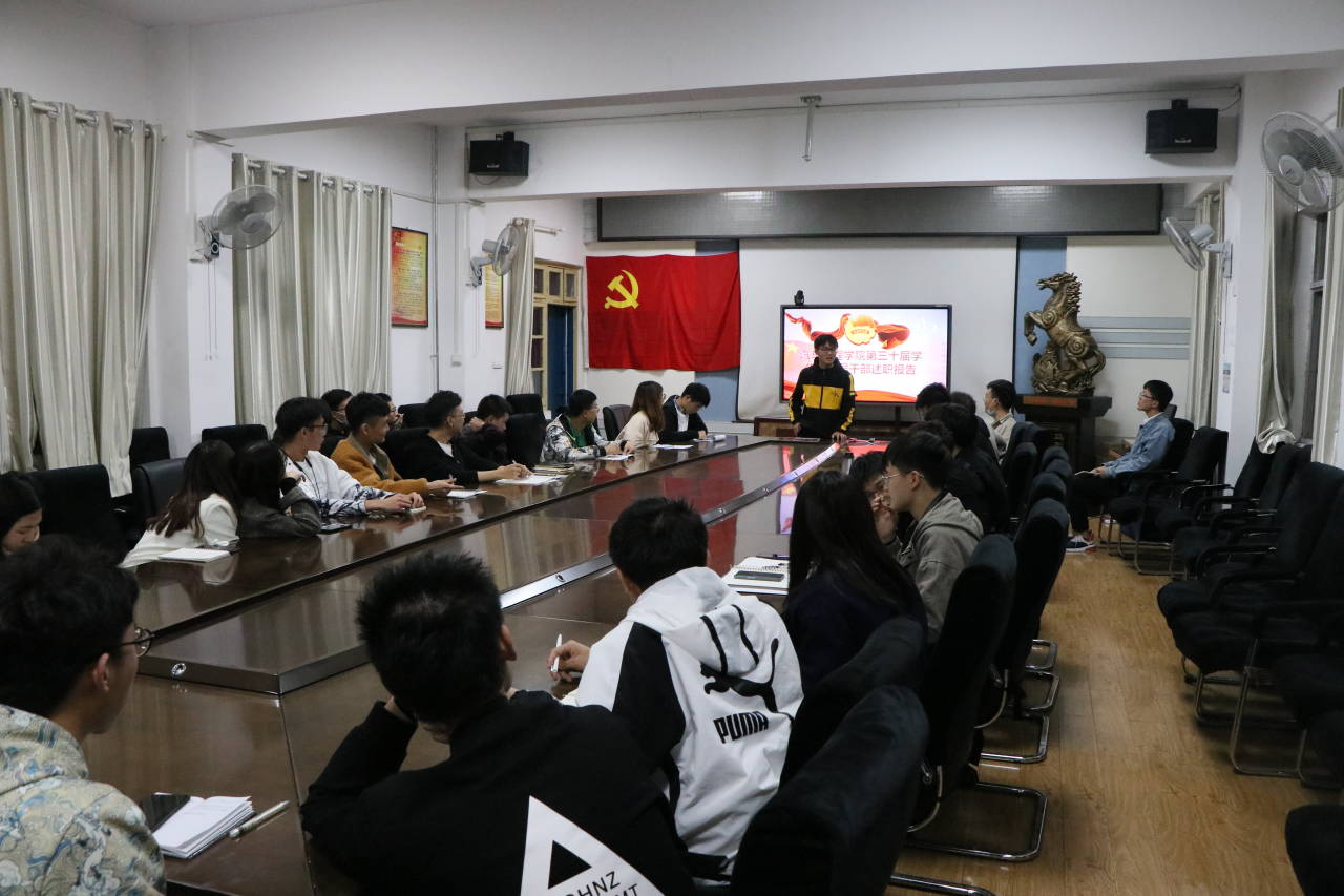 11月21日晚上20:00,9001cc金沙分团委组织学生会全体干部在汽车大院二楼会议室召开了“学总书记贺信,谈青年学生干部的志愿服务精神与担当”主题交流会,分团委副书记杜新宇担任主持。