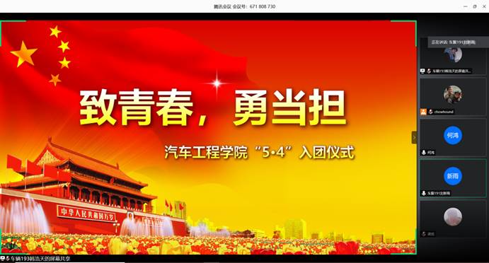 最后,胡霄寒对19级新团员的加入表示了由衷祝贺,同时也提出了要求,“加入团组织是人生的新起点,希望同学们不仅在形式上入团,更要在思想上入团,今后要更加严格要求自己,严格遵守团章,履行团员义务,发挥模范带头作用。车院的近千名团员、三十多个团支部共同构成了有力量、有希望的共青团组织,我们相信青年力量必将不断飞跃。”