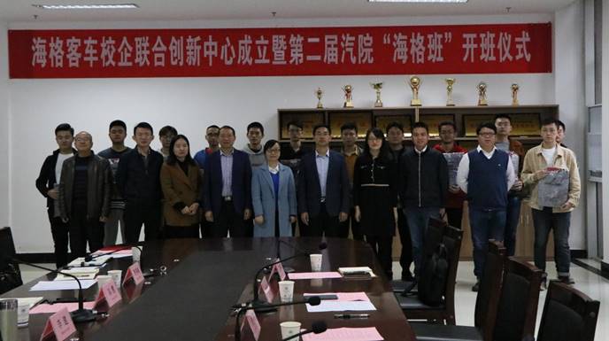 仪式上,周红妮就学校发展历史、专业概况、教学情况、人才培养特色与成效、未来发展等进行了全面介绍。金龙公司的唐英部长详细介绍了海格客车概况,并从课程体系、经典项目、人才培育模式与成长方向等方面详细介绍了海格班培养体系。随后,宋世民、冯樱分别代表企业和学校进行了校企联合创新中心的揭牌及技术服务合作签字仪式,并为入选“海格班”的12名同学赠送了工作服。为加强校企联合培养人才水平,会上还聘请金龙公司王善科主任为海格班客座教授,并由学校教务处副处长李建颁发了聘书。