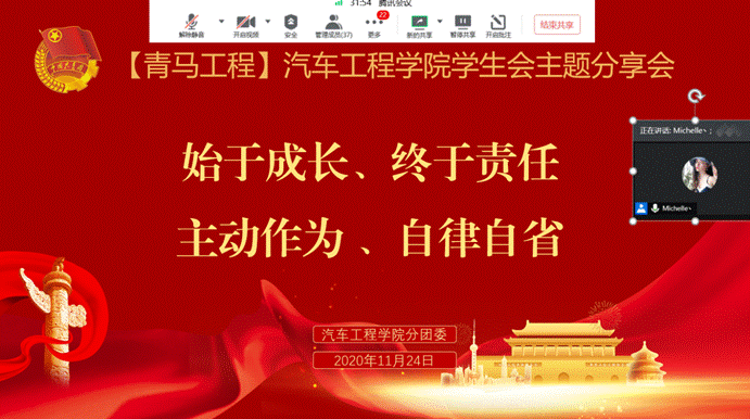 为落实共青团与学联对高校学生会管理责任的指导,强化学生会成员全心全意为学生服务的意识,11月24日晚21:309001cc金沙分团委利用腾讯会议平台开展了学院第四期青马工程学生会干部主题分享会。分团委书记胡霄寒主讲,第三十届全体学生会干部参加。