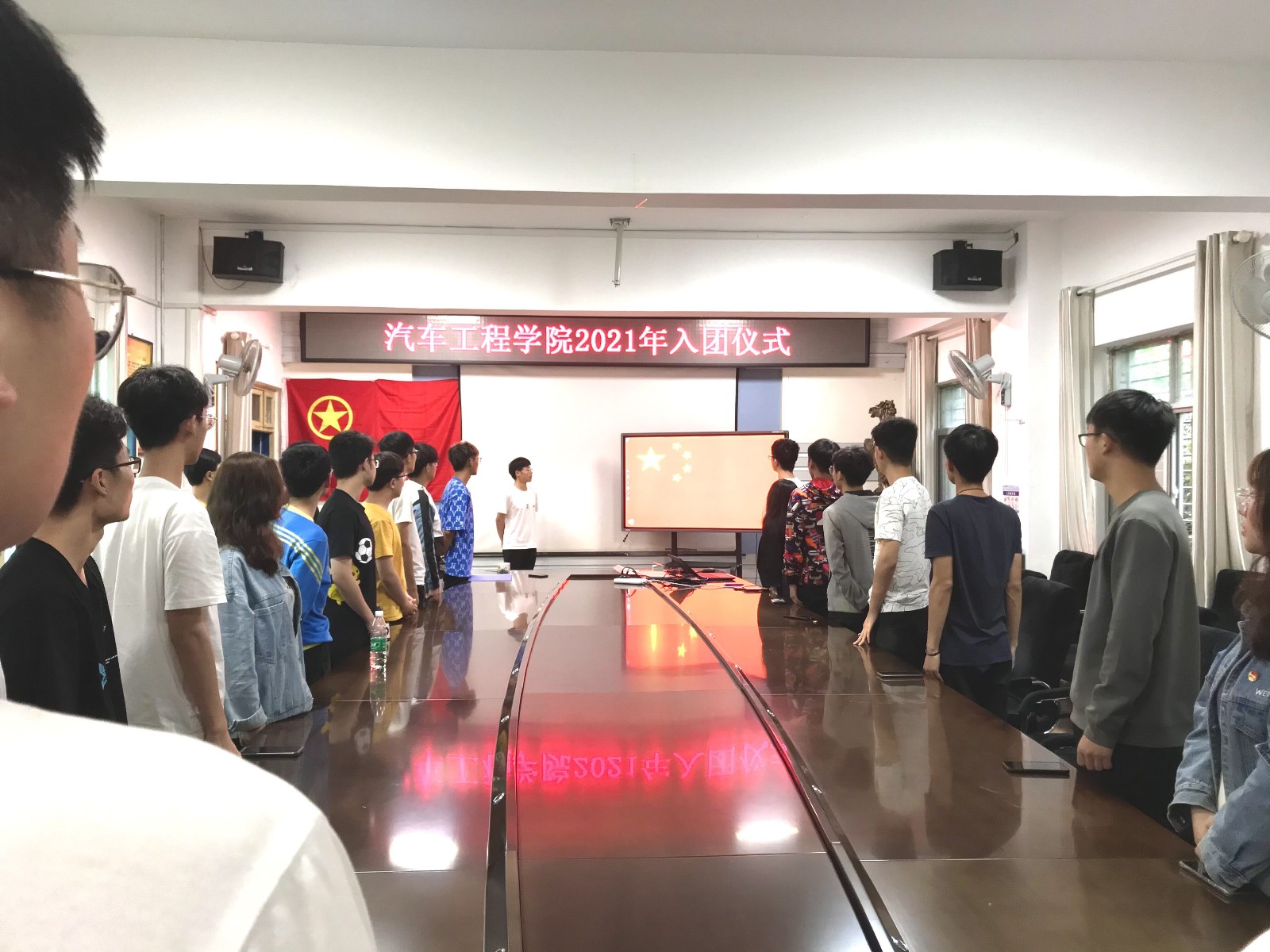 为积极响应校团委拓展共青团队伍建设的号召,引导更多的先进青年学子砥砺前行,5月16日晚上19:00,9001cc金沙分团委在汽车大院会议室举行了2021年新团员“入团仪式”。分团委书记胡霄寒、分团委全体学生干部、车院全体团支书、团员代表及12名预备团员参加了此次会议。