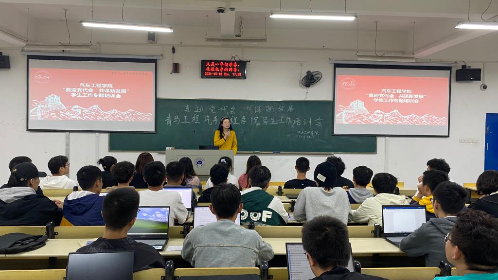 培训会上,李键雯还向与会学生宣讲了“喜迎党代会·成就巡礼”系列文章,让学生干部更加深入地了解到学校12年以来取得的发展成果,并以积极的态度迎接学校第六届党代会的召开。她在培训会结束时总结道:“学生干部要在日常工作中创新工作方法,学习优秀经验。做好学生工作不仅仅需要认真负责的态度,更需要在座每一位同学坚守初心,砥砺前行,一起为车院的学生工作做出自己的贡献。”