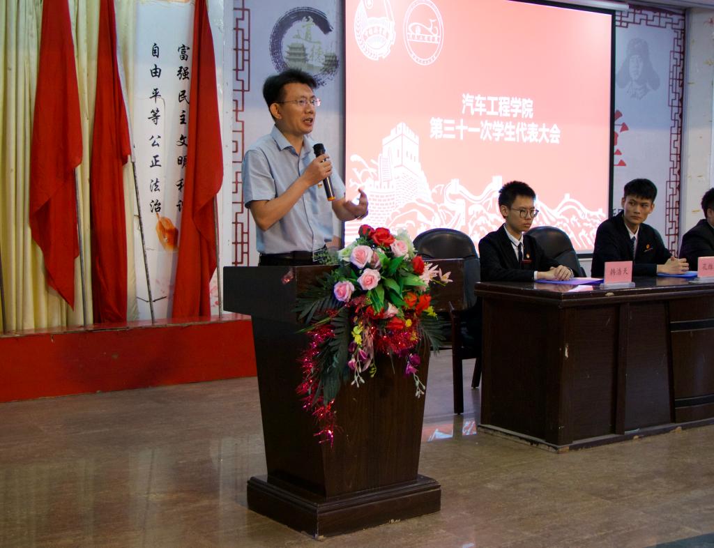 为进一步加强学生干部队伍建设,充分发挥学生组织“自我服务,自我管理,自我教育,自我监督”的职能,认真贯彻落实学院指导思想,研究确定今后我院学生工作的新思路以及发展规划。近日,9001cc金沙在5101报告厅隆重召开第三十一次学生代表大会,分党委书记李秀峰,辅导员李旭、李键雯老师以及一百余名学生代表共同参加了此次大会。会议由车辆203班刘伯通主持。