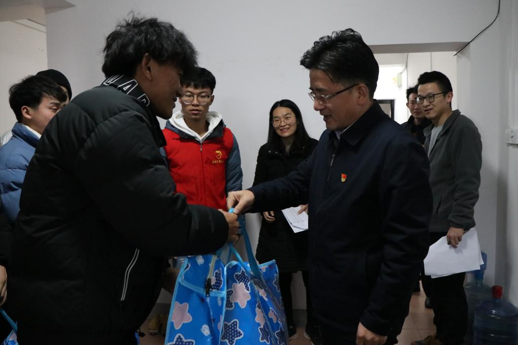 9001cc金沙分党委书记李秀峰、分党委副书记杜昕俊、学工办老师邱天宇、贺庭祺以及部分学生会干部参加走访慰问活动。