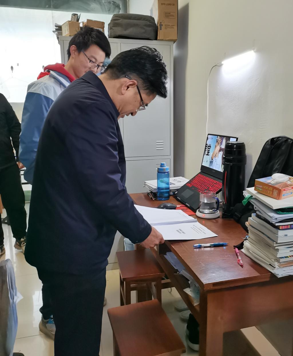 张校长在宿舍与学生们亲切交流,关心了解学生学习和生活状况,并亲手向学生们送上棉被。一床床棉被虽轻,但却饱含着学校领导对同学们沉甸甸的关怀。“宿舍冷不冷?”“伙食怎么样?”“期末复习的怎么样?”每到一间宿舍他都关切的问到。了解到同学们虽然来自五湖四海,但能很和睦相处在一起学习和生活,他感到很欣慰。他还叮嘱同学们在冬季注意保暖,适当锻炼身体,保持良好的卫生习惯。