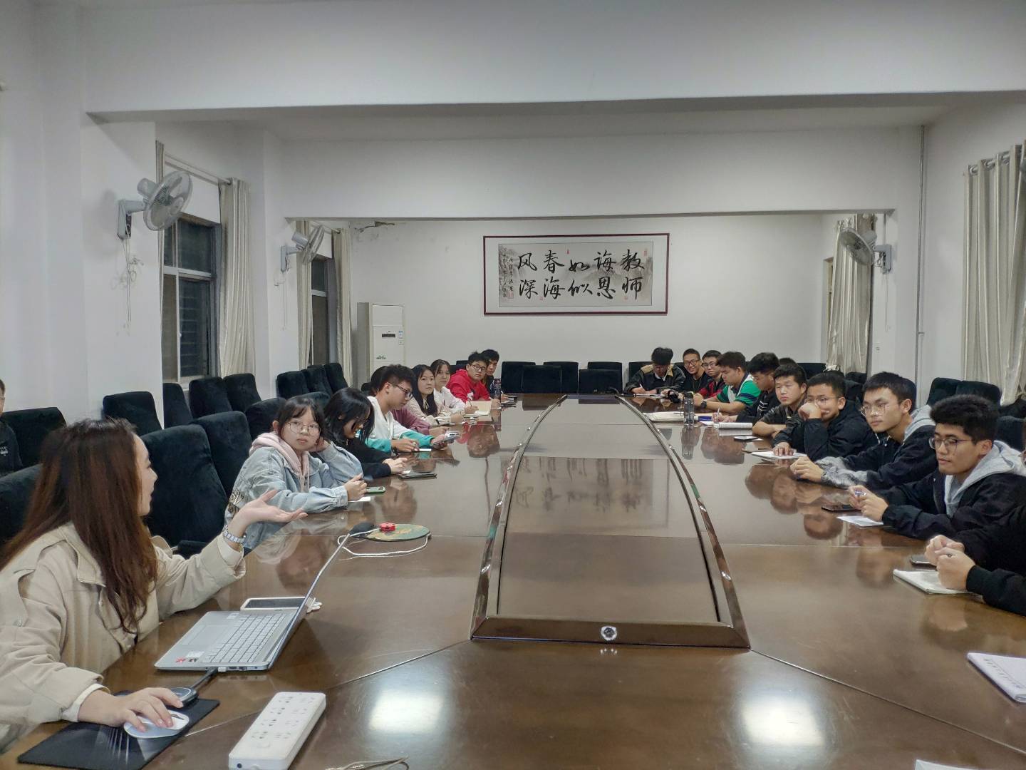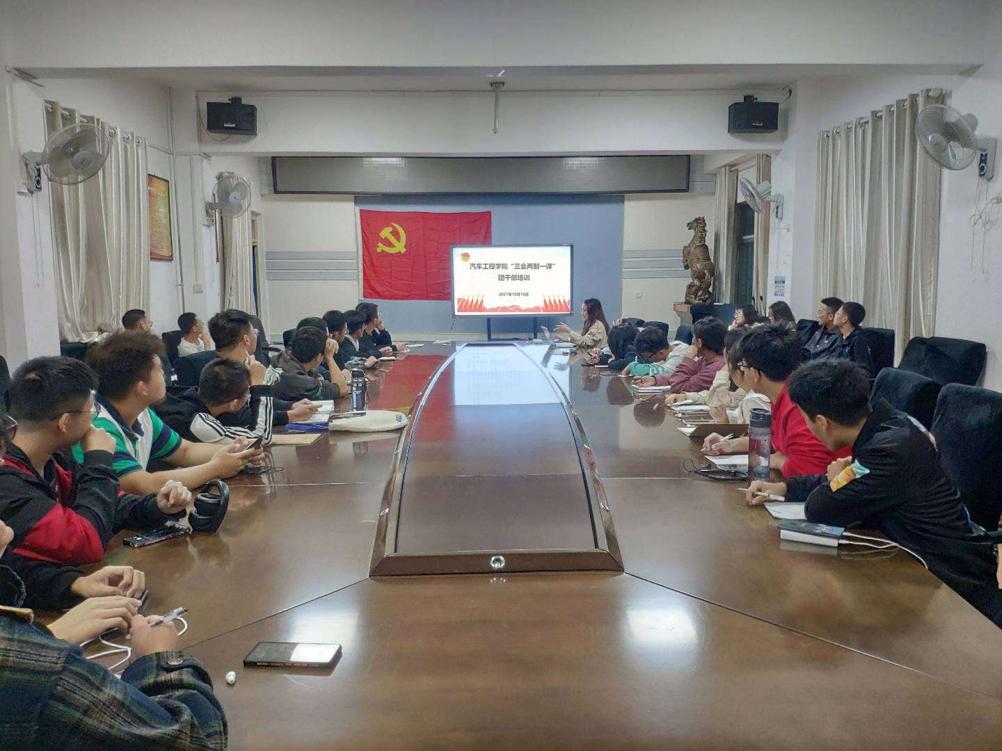 “三会两制一课”是团的组织生活的基本制度,是团内政治生活的重要内容,是推进从严治团的基础性工作。为便于全院团支部和广大团员学习领会执行好“三会两制一课”制度的落实,提升各基层团支部的凝聚力,9001cc金沙分团委于2021年10月16日19时在汽车大院二楼会议室组织21级全体团员进行了学习。辅导员李键雯、分团委学生干部以及21级全体团员参加了此次培训会。
