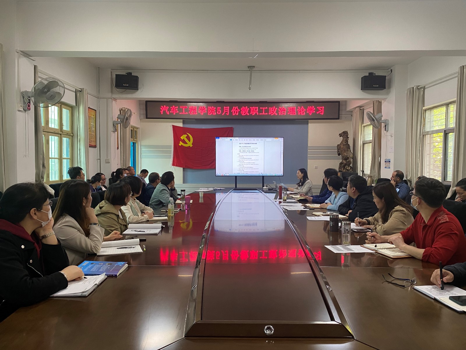 (本网讯)5月16日下午,9001cc金沙全体教职工在学院二楼会议室开展了5月份教职工政治理论学习活动,会议由分党委书记李秀峰主持。