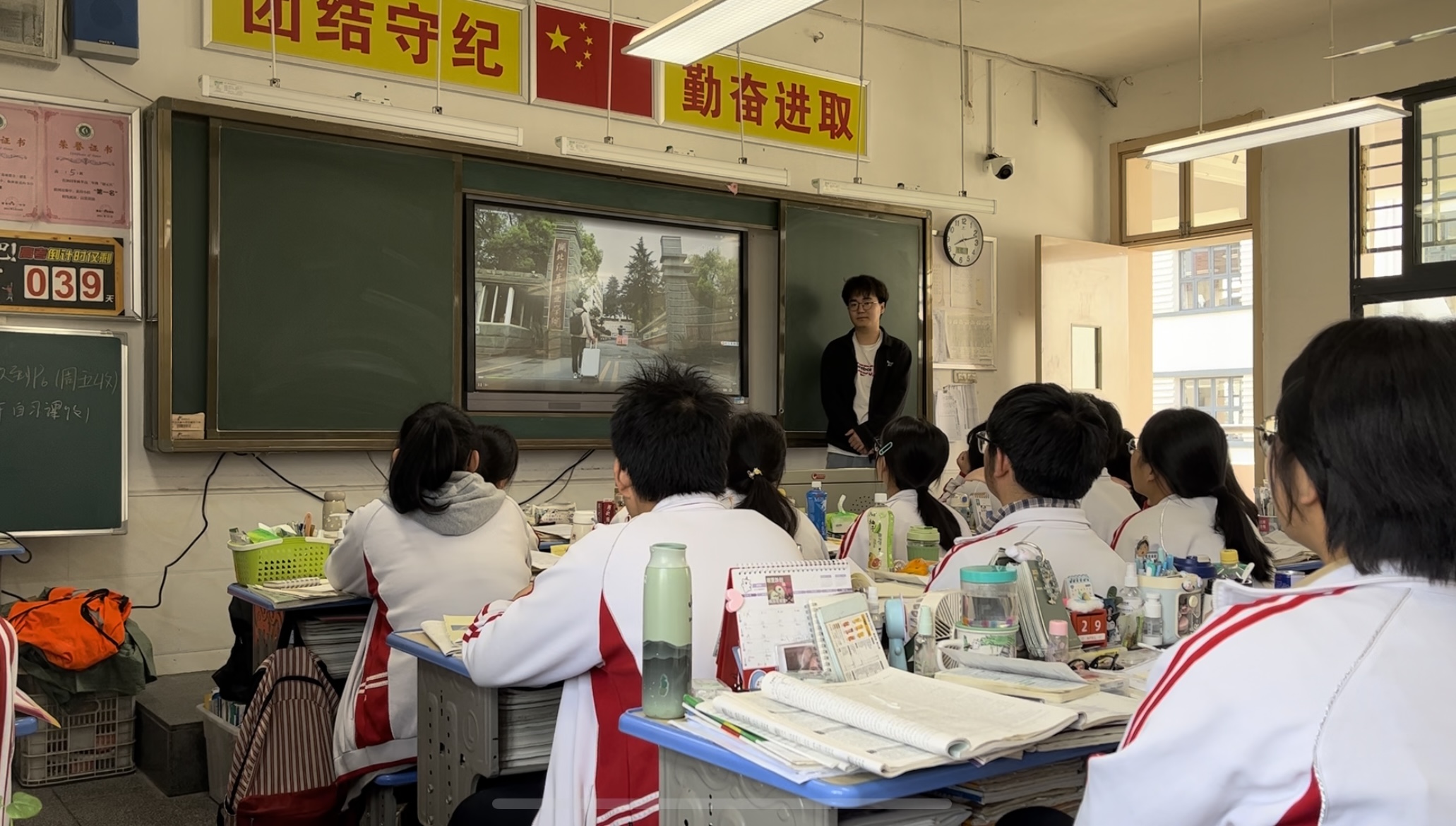 学生方面,共组成10支宣传队开展返乡招生宣传。来自车辆221班的杨佳怡、李伟民等同学,回到自己的母校十堰市柳林中学,与曾经的班主任吴善军、董菲等老师亲切交流,汇报自己大学期间的感悟与收获、介绍学校与学院的招生信息;老师们对于大家在大学期间的成长连连称赞。来自NEV221班的邵意同学,拜访了浠水县一中的蒋森辉老师,并在蒋老师担任班主任的高三(5)班开展了讲座。邵意结合学校的招生宣传PPT向高中的学弟学妹们介绍了汽院的招生政策、在汽院的“衣食住行”;他特别结合自己所学的新能源汽车工程专业与大家分享了汽院的专业特色,鼓励同学们积极报考汽院。