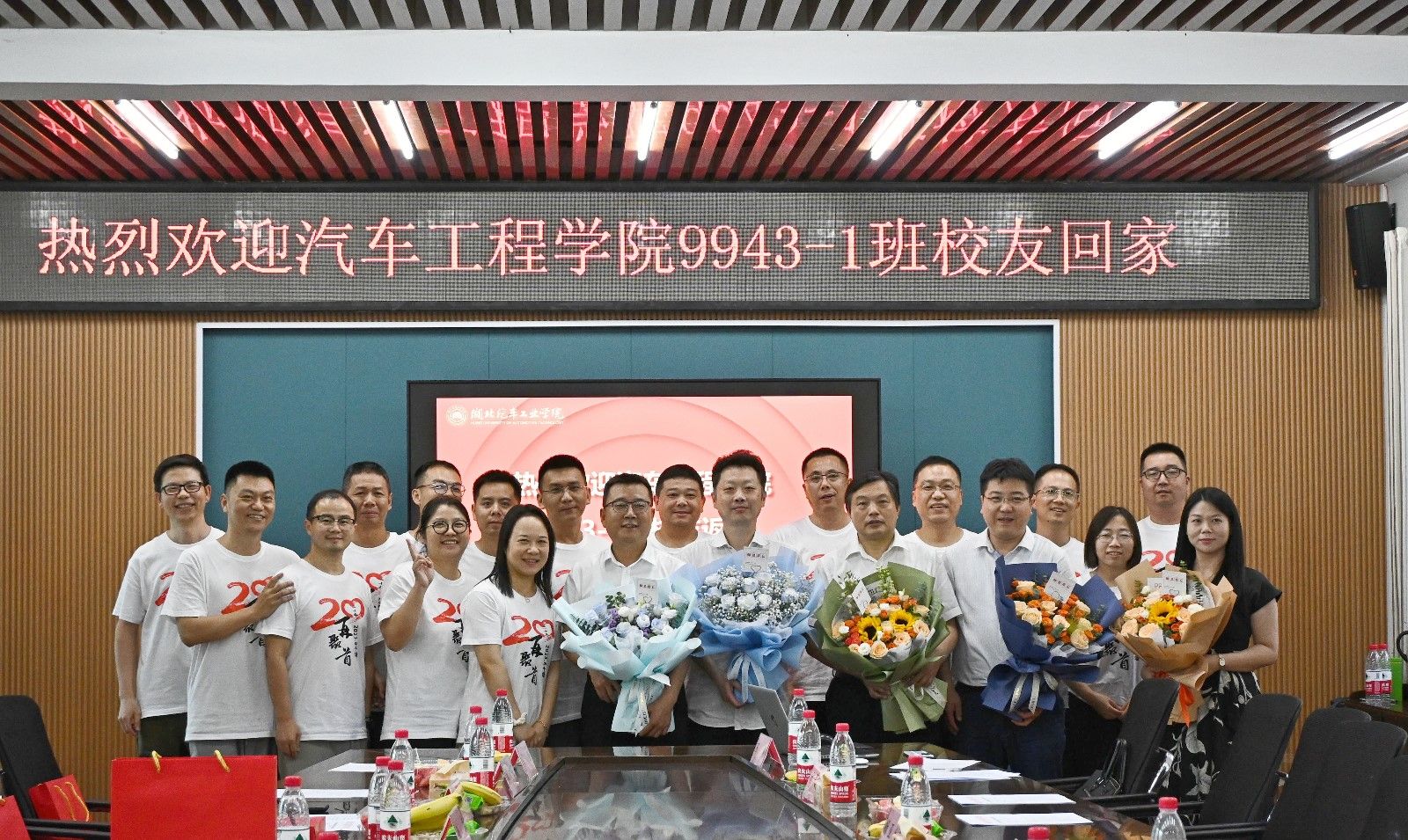 “虽然毕业多年,但是我们始终关注着母校的发展,这次在毕业20年回到母校,亲眼看到这么大的变化,感到十分的骄傲和荣幸……”校友代表纷纷发言交流,在东风商用车技术中心任职的张兵介绍了班级同学的总体情况,对学院的热情欢迎和周到组织表达了感谢,在武汉软件工程职业学院任职的金云龙谈到了本科学习对自己工作的帮助,在桂林市秀峰区人武部工作的聂绍彪盛情邀请师长和同学去桂林一游……校友们还纷纷在红色签字簿上写下了对母校的真挚祝福,并向师长献上鲜花。