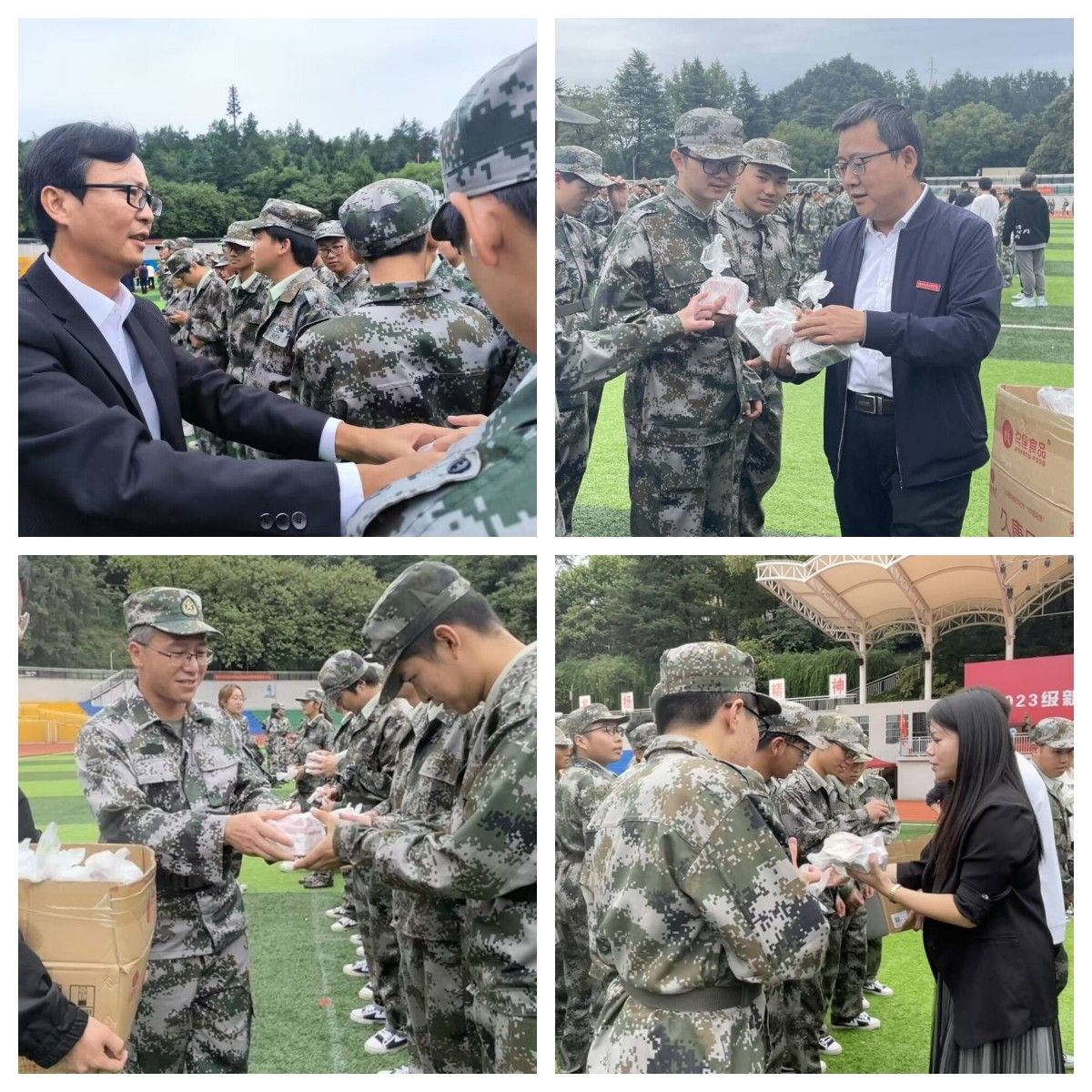 为传达学院对学生的关怀和温暖,帮助新生尽快适应大学生活,为之后做好有温度的教育管理工作打下坚实的基础,9001cc金沙在2023年“中秋·国庆”双节来临之际,深入军训场地、教室、宿舍等地,开展走访慰问、送节日祝福、组织安全检查等活动,确保师生度过一个欢乐祥和的假期。