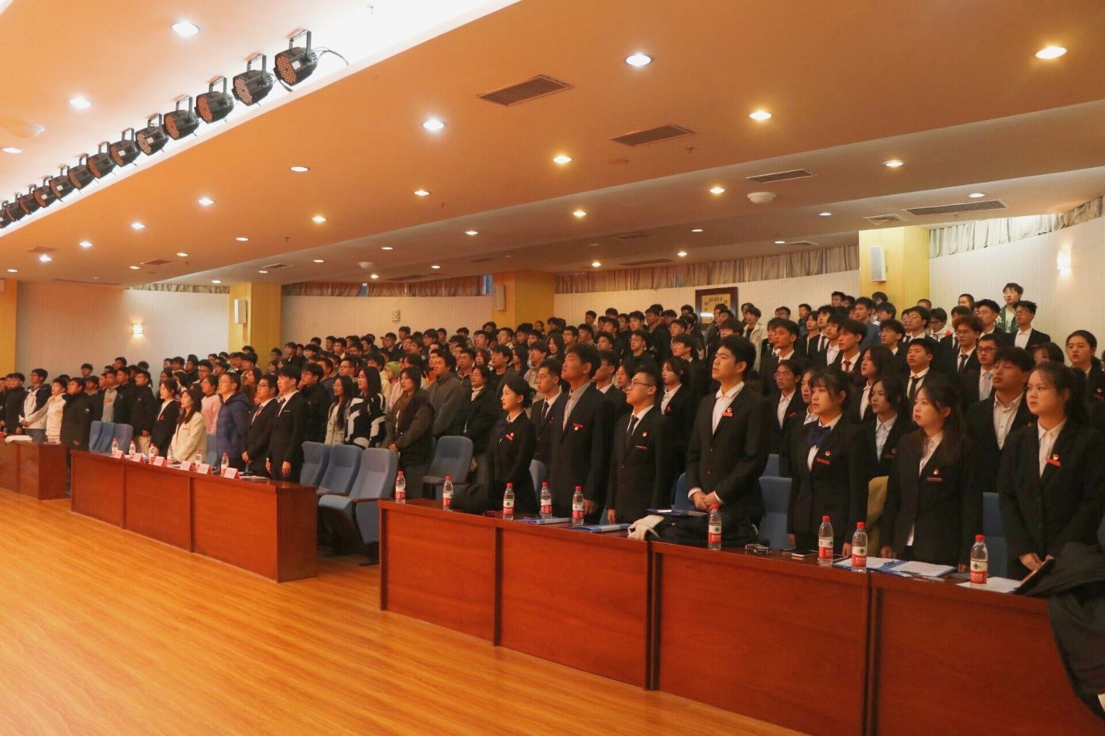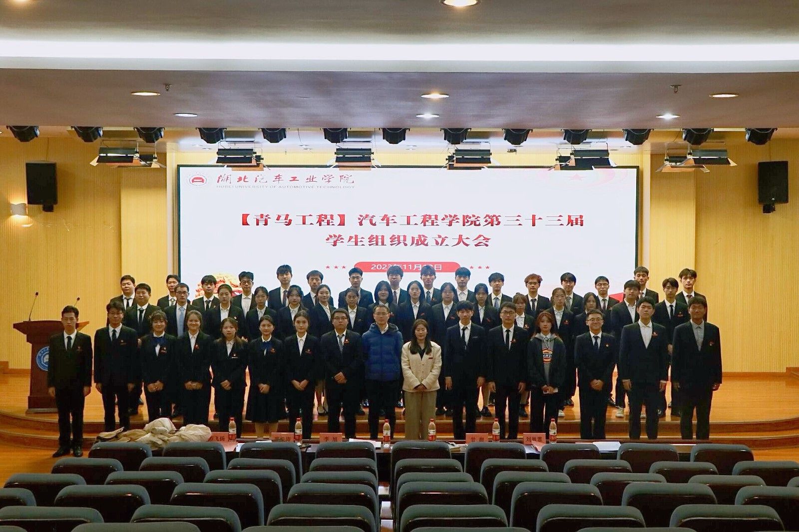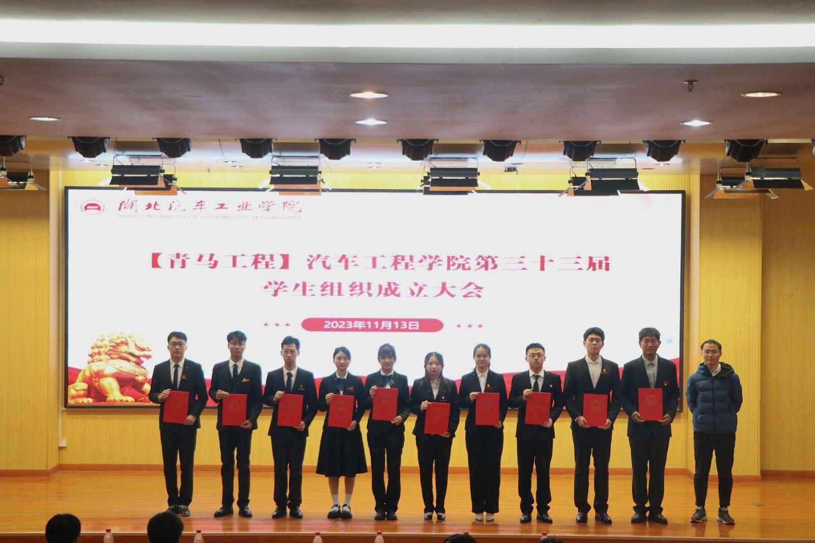 大会在国歌声中正式拉开帷幕。校学生会执行主席度焕涛、校志愿者联合会副主席刘雨霏依次致辞。李旭宣读了第三十三届学生组织主席团名单并为主席们颁发了聘书。甘甜宣读了第三十三届学生组织部门负责人名单,万飞扬颁发了聘书。随后,分团委副书记刘汶汶、华乐,新媒体总编辑王家乐,志联车院分会会长杜佳学,体育运动联合会主席李毓航依次上台进行就职演讲。