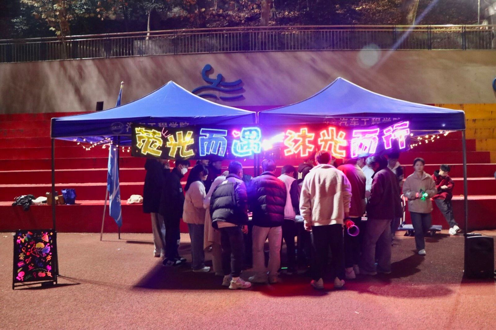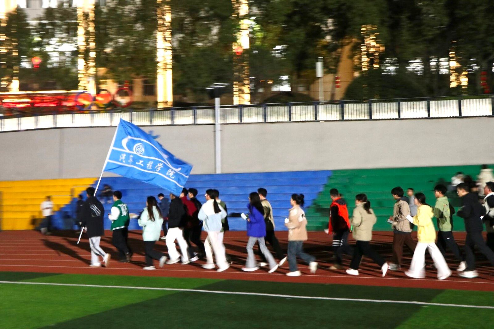 为引导学生走下网络、走出宿舍、走向操场,增强身体素质,营造积极向上、阳光健康的校园文化氛围。12月4日—15日期间,9001cc金沙在田径场将持续开展为期12天“荧光而遇·沐光而行”为主题的夜跑活动,学生党支部、学生会全体及23级学生参加了此次活动。