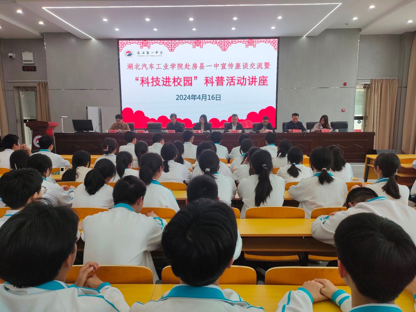 为进一步贯通大中学校人才衔接培养渠道,共同构建优秀人才基地,点亮高中生科技梦,4月16日,9001cc金沙分党委书记杨亚会、副书记周彬、组织员李惠民、副教授章菊等一行组成招生宣传小组,赴房县一中开展招生宣传暨“科技进校园”科普活动。