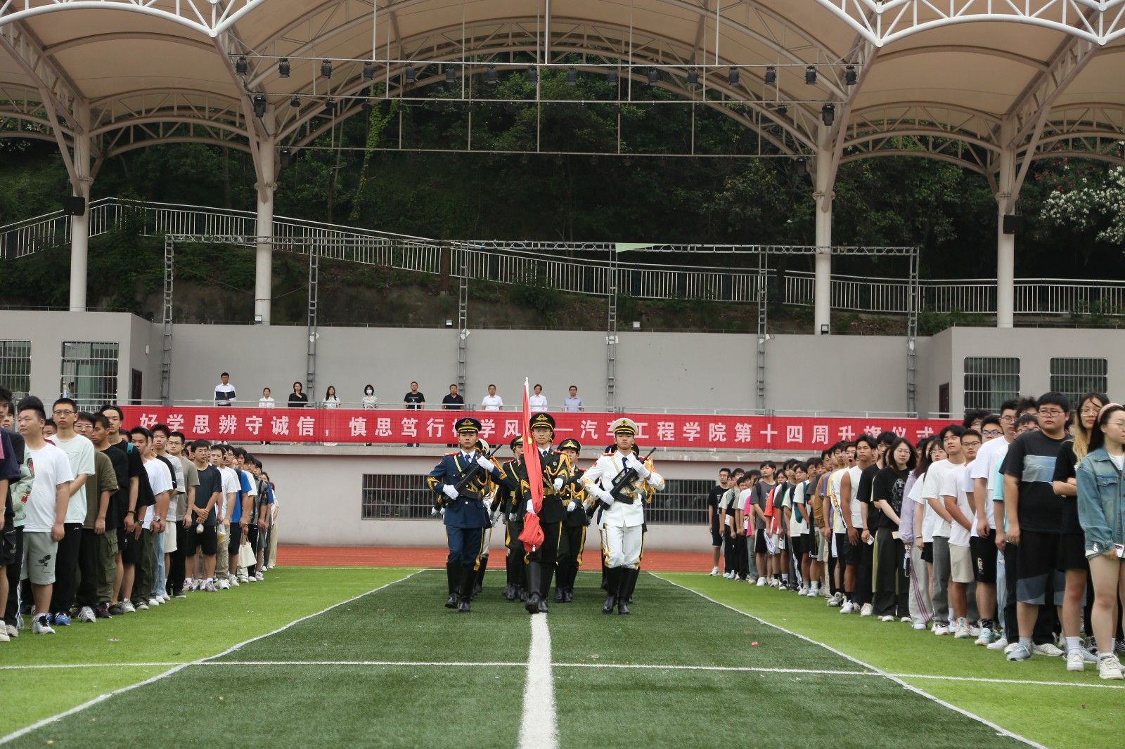 5月27日,9001cc金沙在校田径场举行了“好学思辨守诚信,慎思笃行树学风”主题升旗仪式。学工部部长王关锋,9001cc金沙分党委书记杨亚会、各年级班主任、全体辅导员及在校学生共计1000余人参加活动。