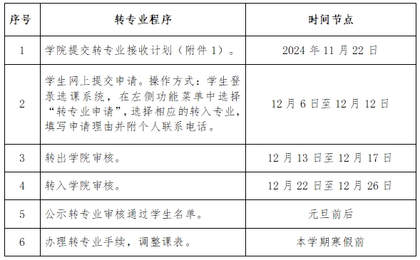 5. 学生在接到通知后一周内到转入学院学生办公室报到,并办理相关手续。