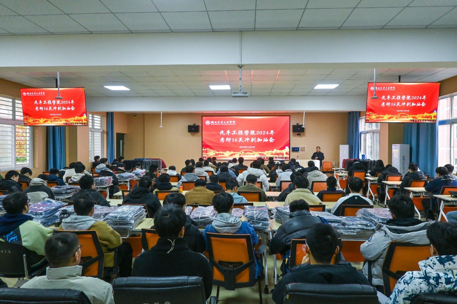会上,周彬鼓励各位考研的同学,学校和学院是所有考研学子最坚强的后盾,全力为同学们提供优质高效的服务指导、充足的考研备考环境、必要的课程辅导培训、有力的保障支持,所有车院人都为同学们加油鼓劲!