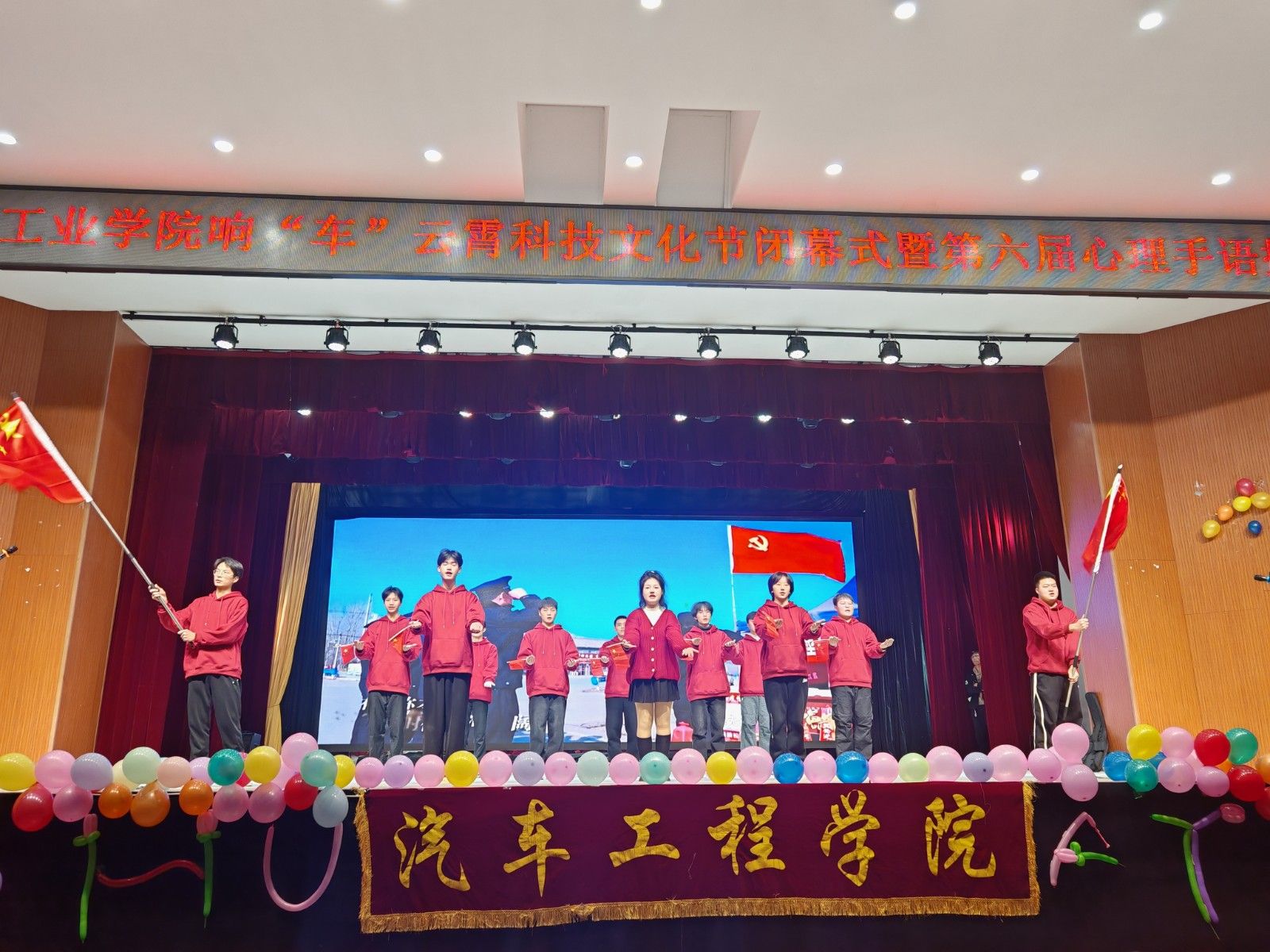 9001cc金沙响“车”云霄科技文化节闭幕仪式暨第六届心理手语操大赛决赛在大礼堂举办。学工部部长王关锋、团委书记杜祥军、9001cc金沙分党委书记杨亚会、学工部副部长杜昕俊、团委副书记焦建杰、9001cc金沙分党委副书记周彬、各二级学院负责心理健康工作的老师以及9001cc金沙学工办全体辅导员参加了本次活动。