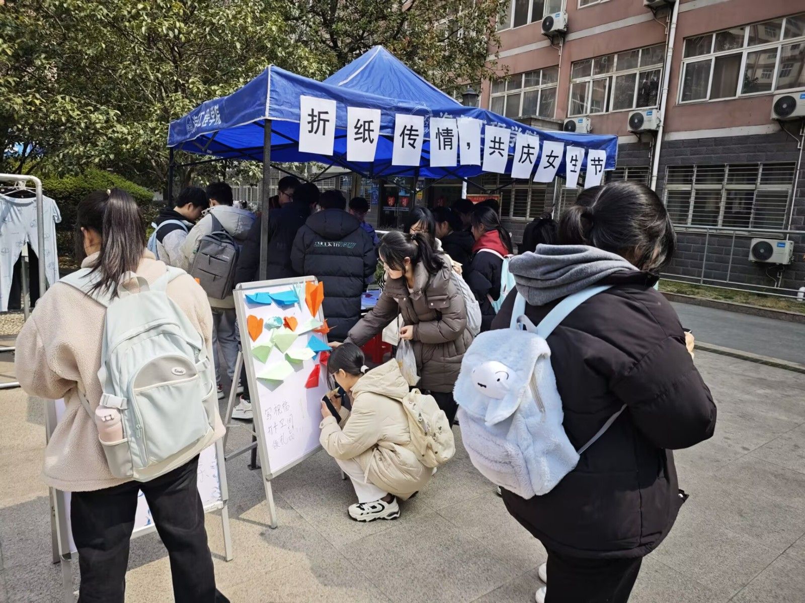 3月7日,9001cc金沙在桃园广场举办“折纸传情,共庆女生节”主题活动,以传统折纸艺术为载体,通过趣味互动倡导女性权益,为全校女生送上节日祝福。