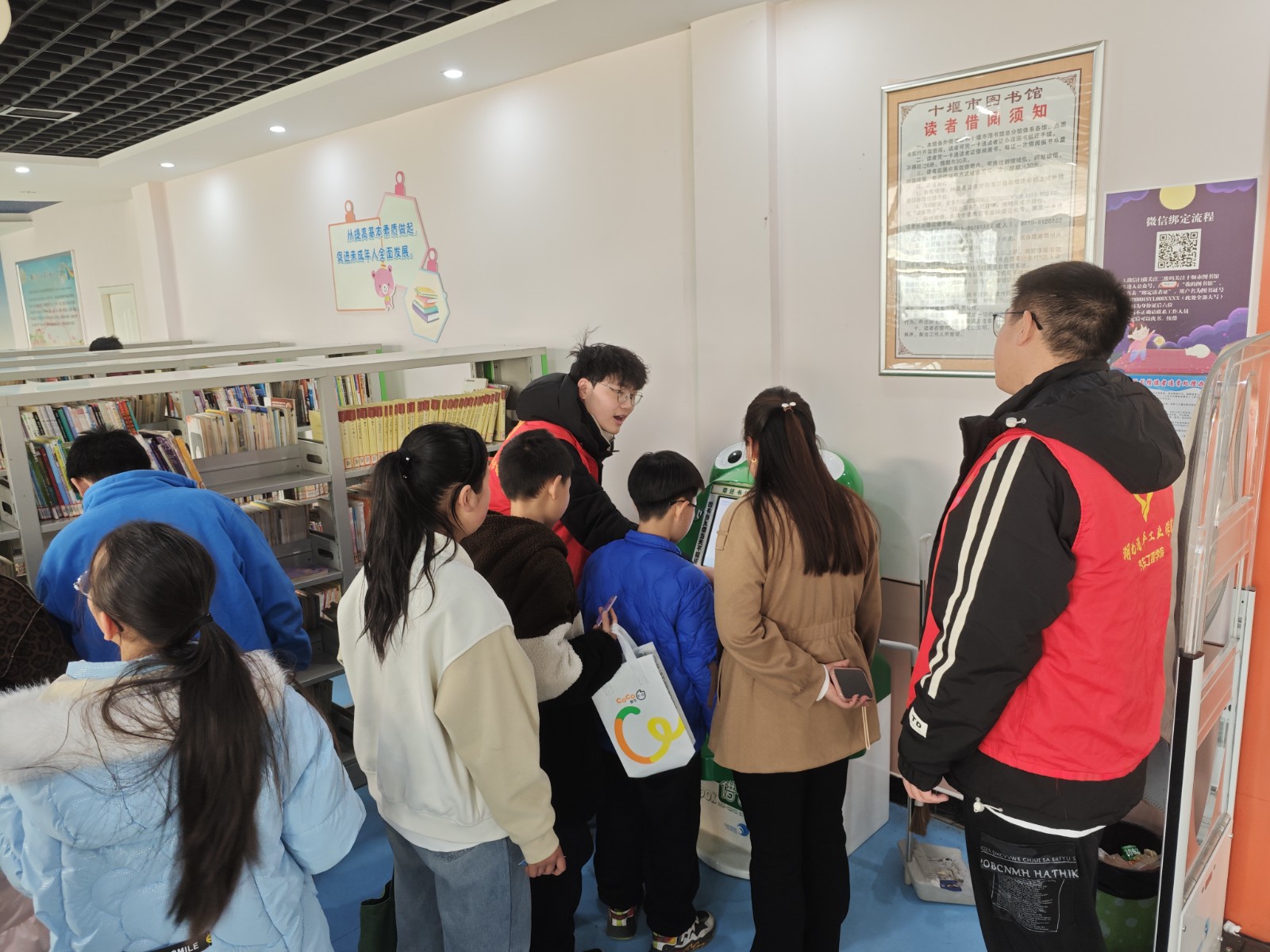 活动中,志愿者们身着统一服装,分工协作,高效完成图书归置、设备操作指引等基础服务。在社科阅览区,志愿者们运用“分类编码-错架复位-破损修复”三级工作法,完成百余册图书的整理维护;在借阅区,耐心解答读者咨询,保障借阅流程顺畅。与此同时,志愿者们通过互动演示、案例分享等形式,向市民普及旧物改造技巧,如废旧书籍二次创作、生活用品创意再利用等,生动诠释了“变废为宝”的实践价值,并结合“绿水青山就是金山银山”理念,阐释垃圾分类、资源再生的科学意义。