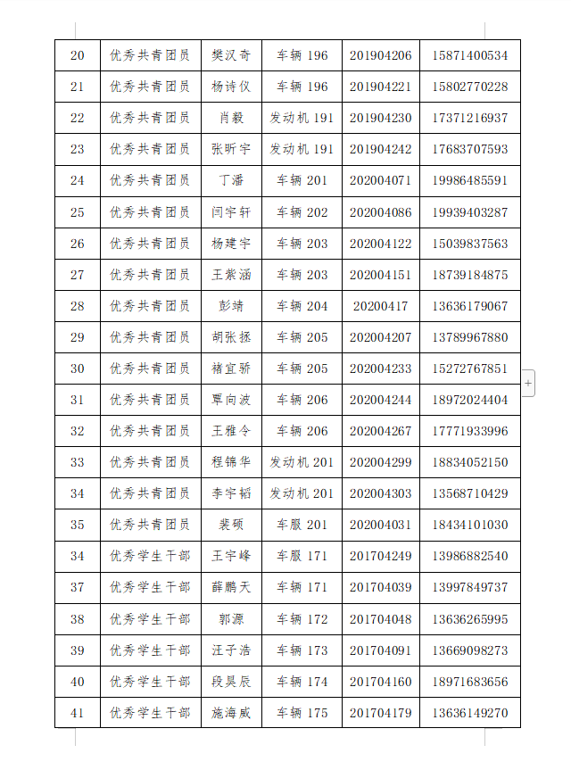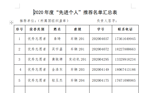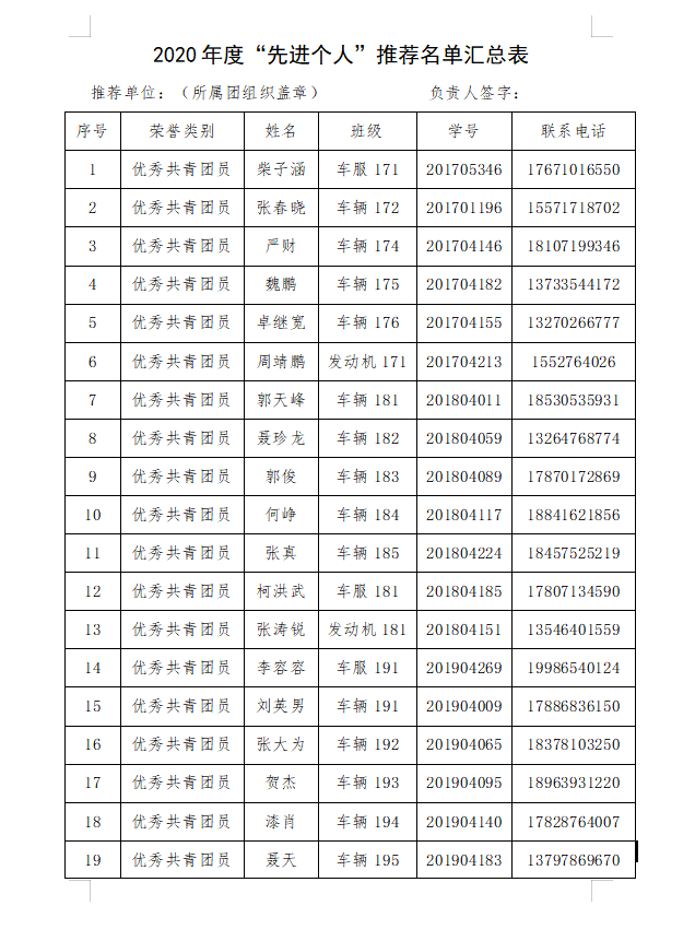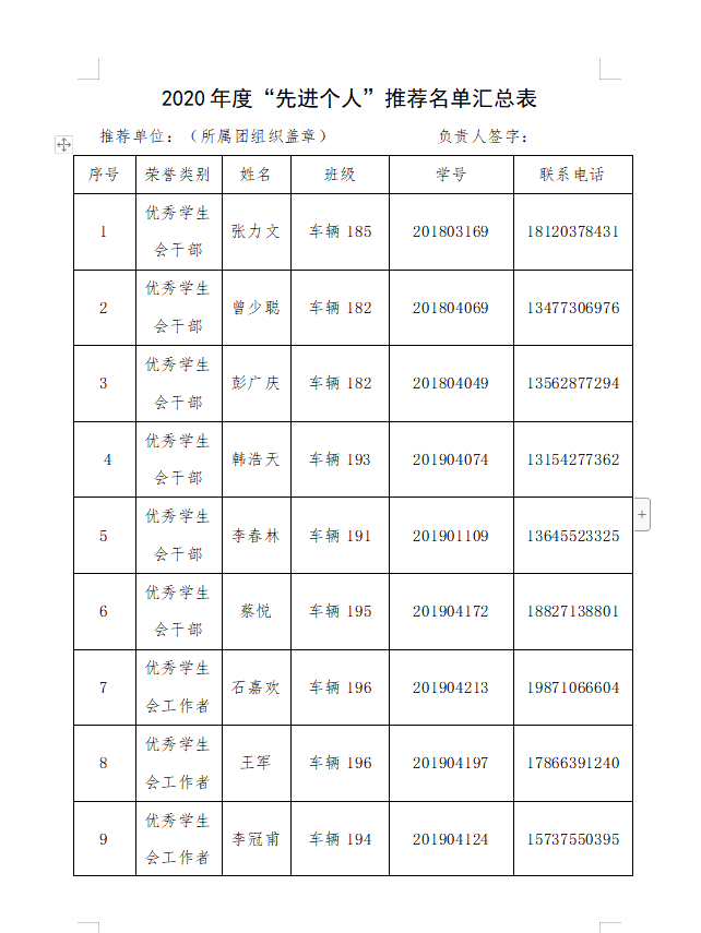 2020年度“先进个人”推荐名单汇总表-9001cc金沙学生会.docx