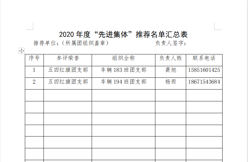 2020年度“先进集体”推荐名单汇总表-9001cc金沙.doc