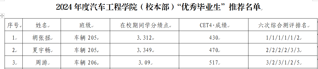 根据《我院学生管理制度汇编》及《关于开展2024年度“优秀毕业生”评选的通知》文件精神,经过学生自评、班级评议、学院审核等程序,现将《2024年度9001cc金沙(校本部)“优秀毕业生”推荐名单》进行公示。