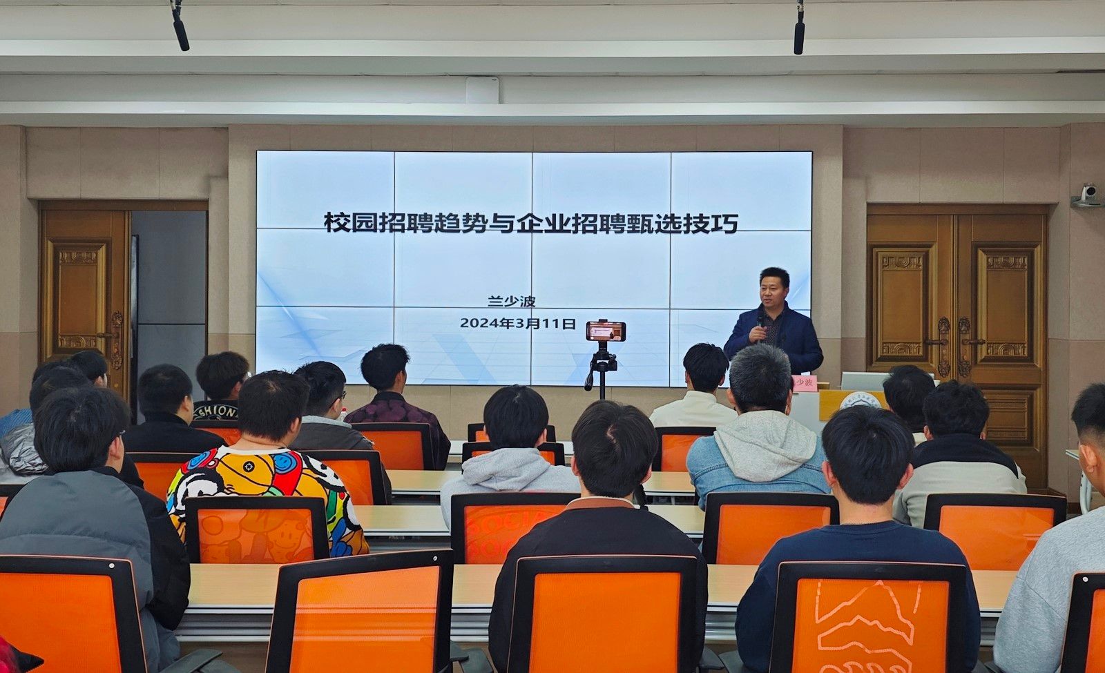 兰少波以“校园招聘趋势与企业招聘甄选技巧”为题,从校园招聘趋势、招聘面临挑战、HR如何面试、标准面试流程以及简历展示等五个方面作深入阐述,用数据分析、案例说明等形式,讲问题、剖原因、理思路、传方法,强调在求职过程中要做到心中有秤、提问有法、察言观色,为同学们提供了宝贵实用的求职建议。