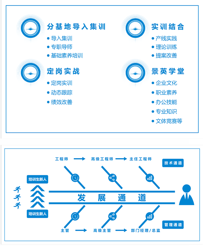 四、大学生培养计划:(试用期6个月,培养公司未来技术、管理岗位接班人)