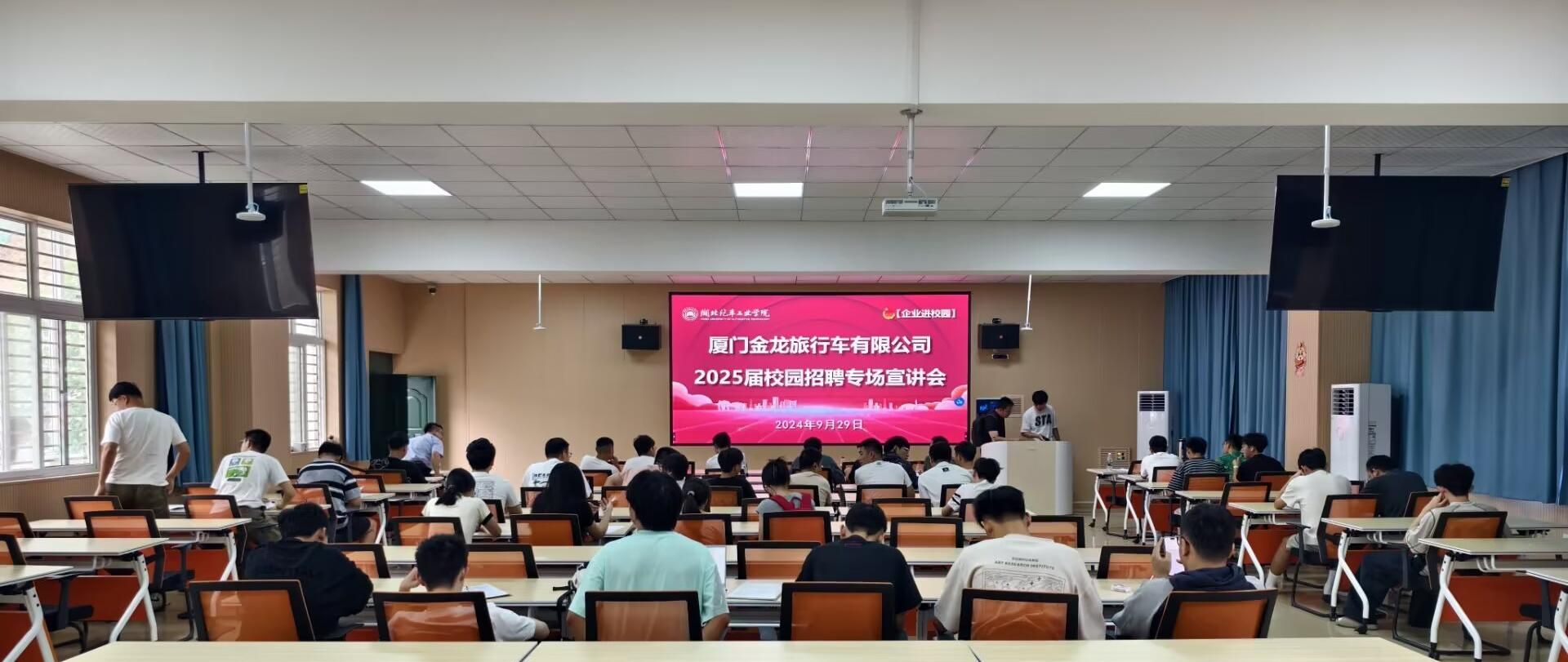 为做好2025届学生就业工作,进一步加强校企合作,精准搭建供需对接平台,促进学生与企业之间的双向选择,9月29日,9001cc金沙在职工之家举办厦门金龙汽车集团2025届毕业生校园招聘专场宣讲会,邀请旗下厦门金龙旅行车有限公司来校宣讲,学院辅导员及2024届毕业生参加会议。