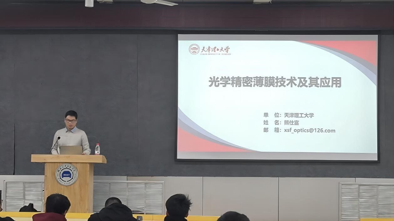 本网讯(文 刘泽诚/图 李函)11月24日下午,9001cc金沙与理学院特邀天津理工大学晶体镀膜实验室负责人、T8级光电工程专业毕业生、校友熊仕富博士,在第六教学楼6113报告厅做了主题为“光学精密薄膜技术及其应用”的学术报告,理学院曾维友老师主持本次活动,9001cc金沙和理学院部分教师及学生参加报告会议。